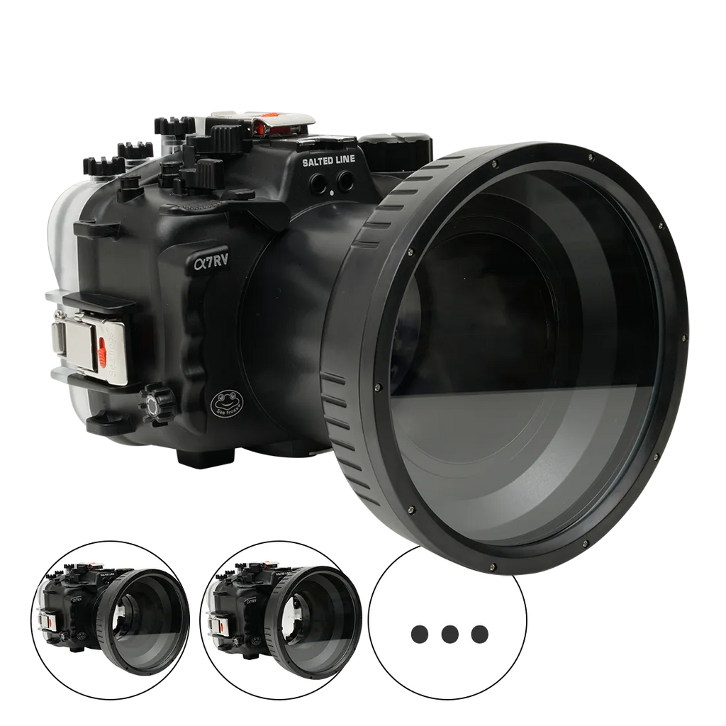 The Salted Line A7RV/A7V Housing with a 6-inch Optical Glass Flat Port bundle is perfect for both prime and zoom lenses when shooting at the water's surface. While they can be used for underwater photography and videography, remember that a flat port can decrease your lens's angle of view by up to 28%. For wide-angle and fisheye lenses, a dome port is recommended instead