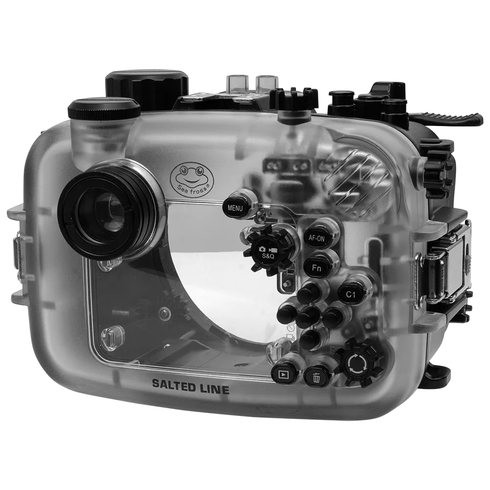 This housing provides full control of all camera functions (excluding the touchscreen) and is equipped with a standard bayonet mount with a 90mm diameter, compatible with a wide range of Sea Frogs dry flat and dome ports (except those made for A6xxx and RX1xx camera housings).