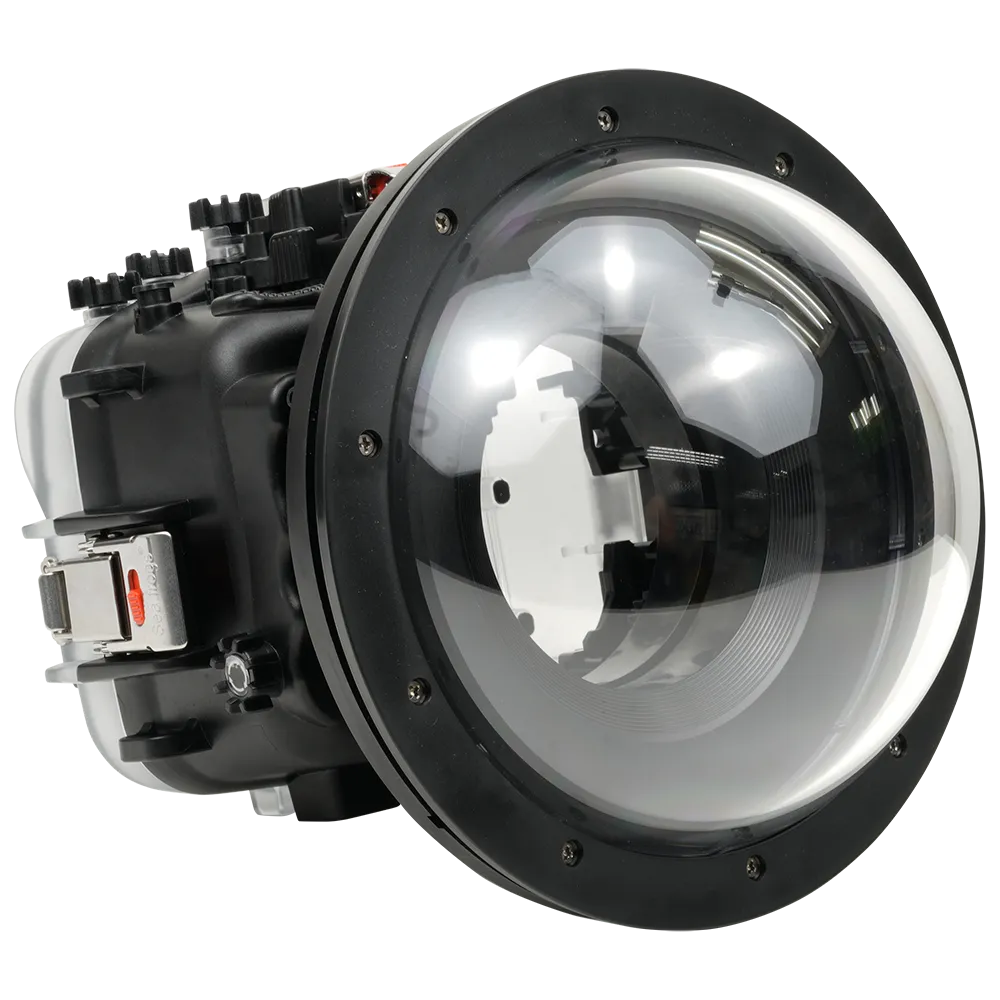 This housing provides full control of all camera functions (excluding the touchscreen) and is equipped with a standard bayonet mount with a 90mm diameter, compatible with a wide range of Sea Frogs flat and dome ports (except those made for A6xxx and RX1xx camera housings).